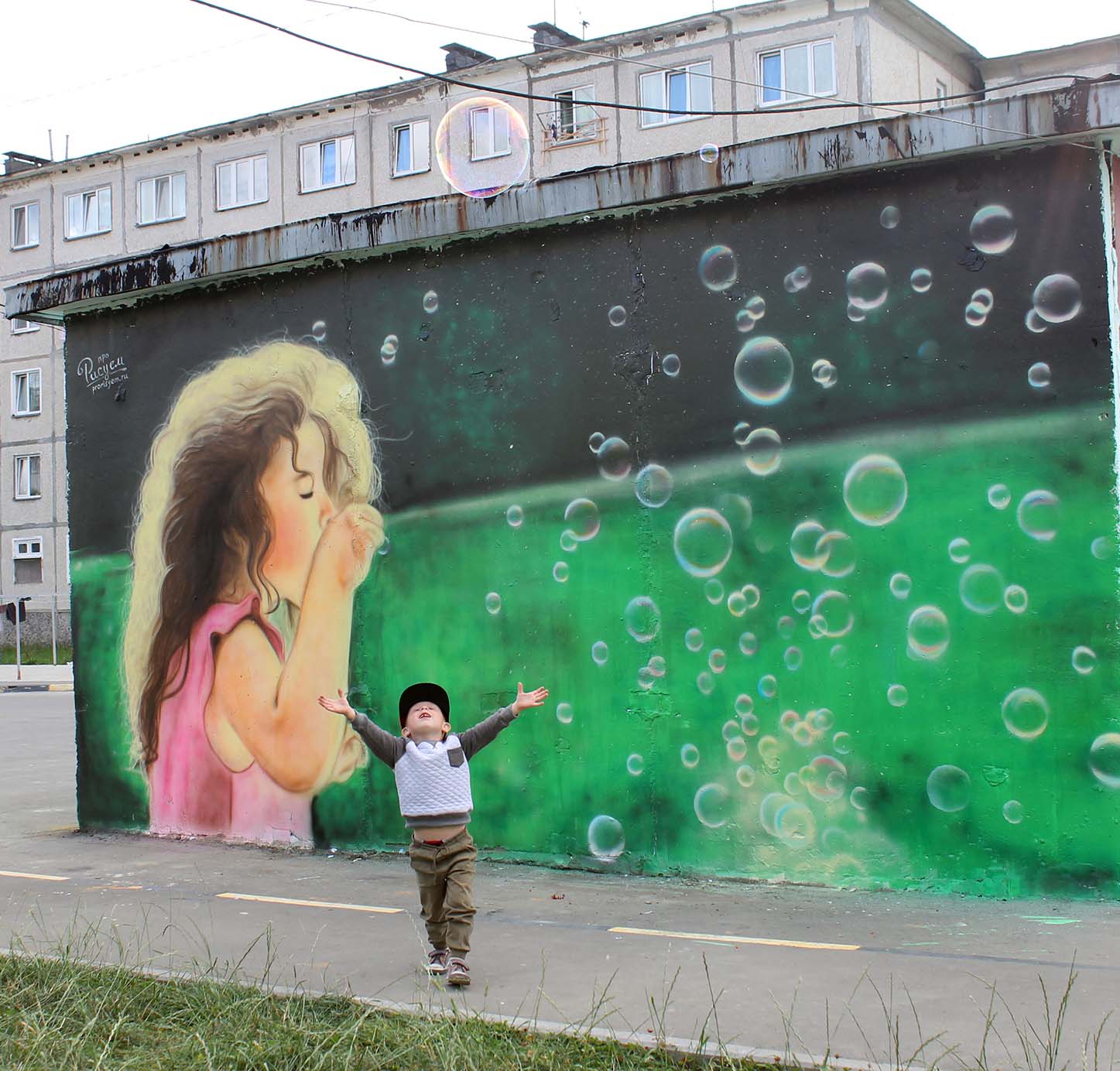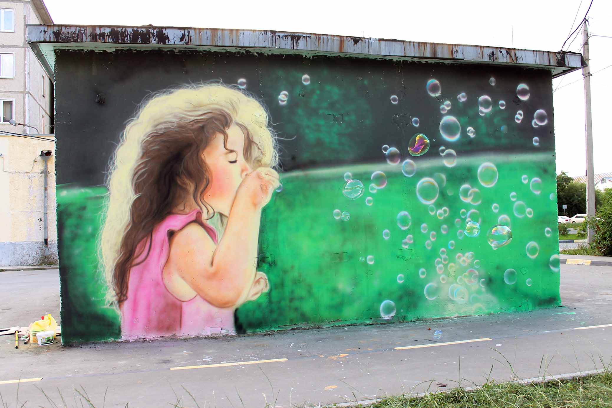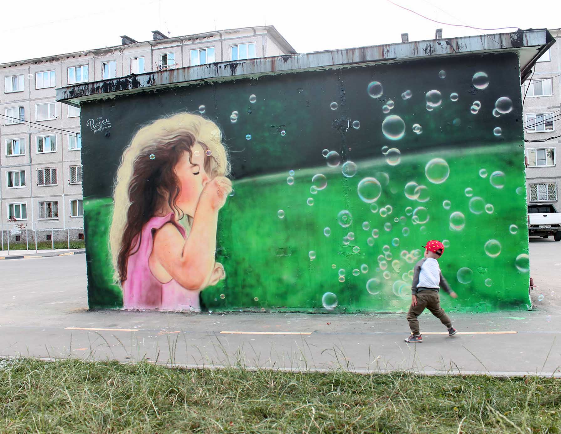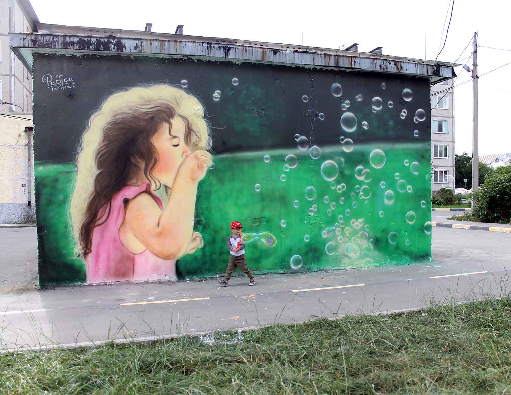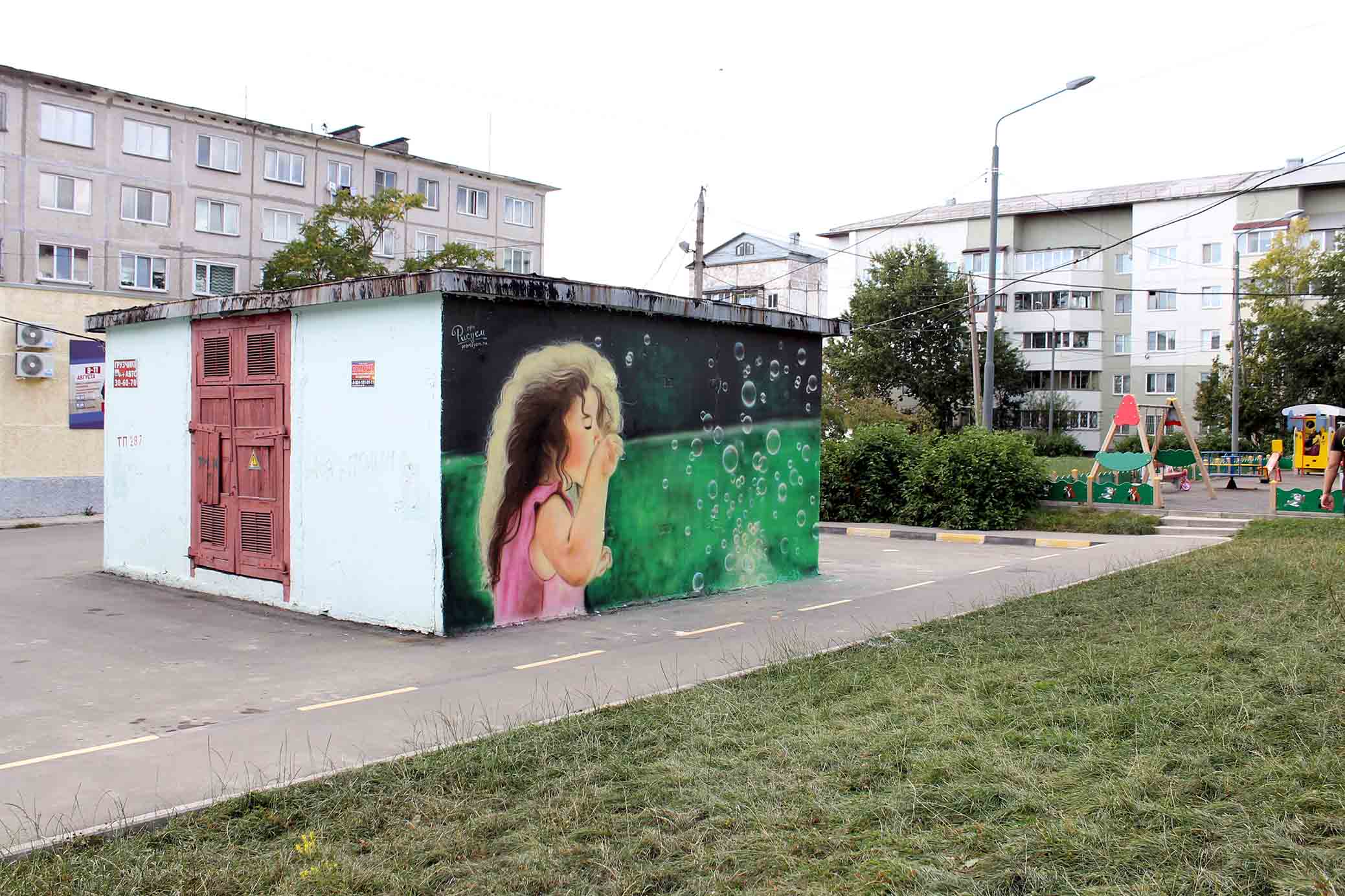 В рамках V (юбилейного) общегородского творческого проекта «Культурная столица», Городской Дом культуры «Родина» представляет командный конкурс уличного граффити «ИЗОбражение». Пять команд, будут создавать в разных местах города свои арт стены. Свою стену мы сделали одни из первых, большой сюжет готовит телекомпания АСТВ и будут его транслировать в день города. А лучший рисунок выберешь ты, да именно вы будете голосовать за понравившуюся работу, голосование будет проходить на сайте Сах.ком, после 8 сентября. И пусть победить сильнейший. И вот собственно наша работа, которая расположена между двух детских площадках в 9 микрорайоне, ул. Комсомольска, 278. Наша тема рисунка детство, легкий ненавязчивый рисунок вписался на территории двора, создавая непринужденную атмосферу во дворе.