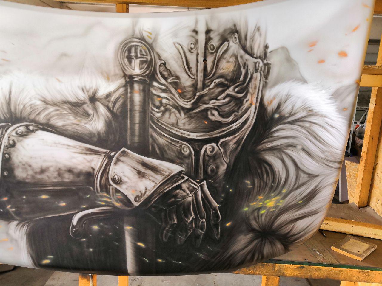 За несколько дней нарисовали такую красоту аэрографом. Персонаж из игры "Dark Souls" оооочень круто получился