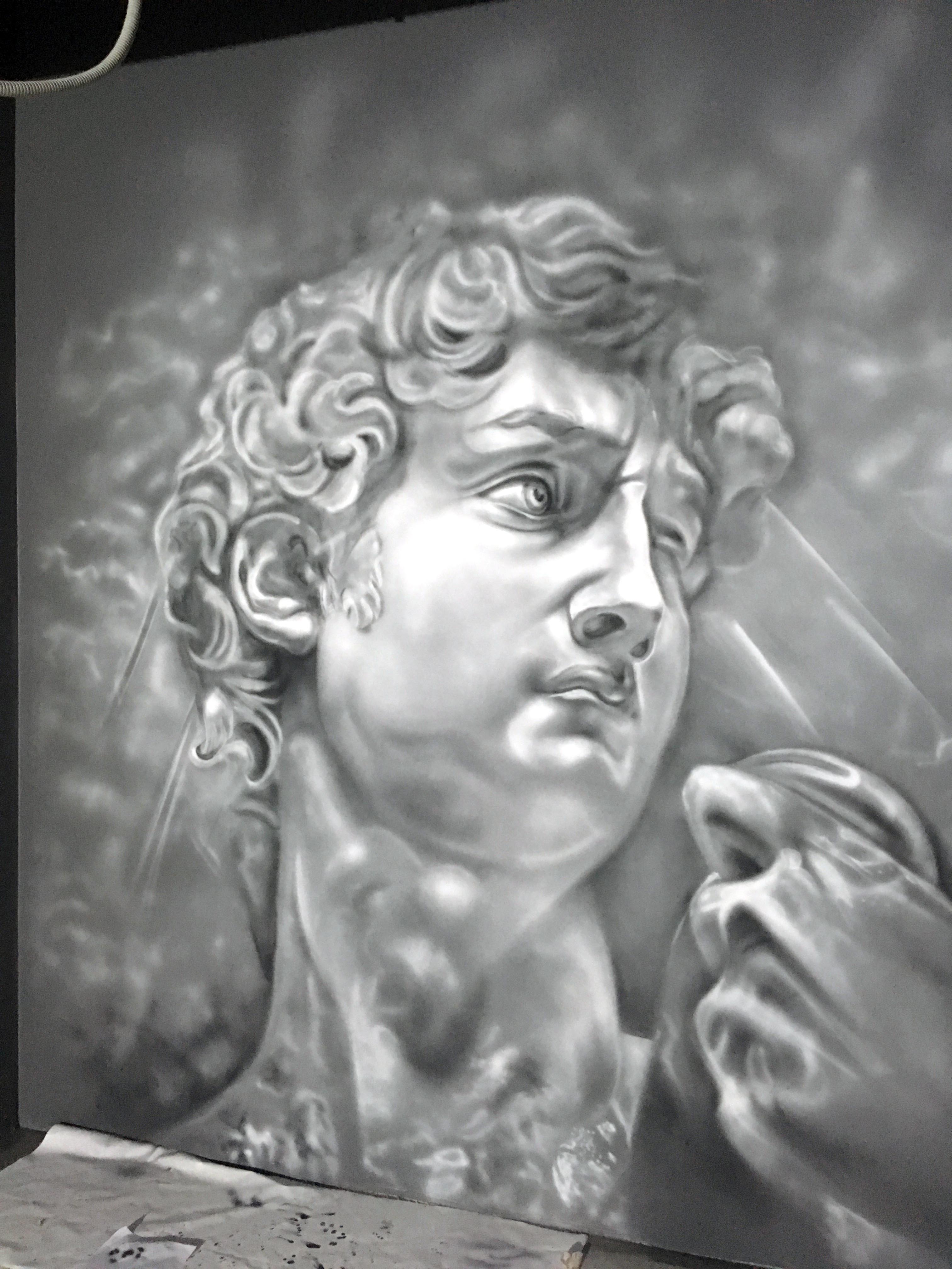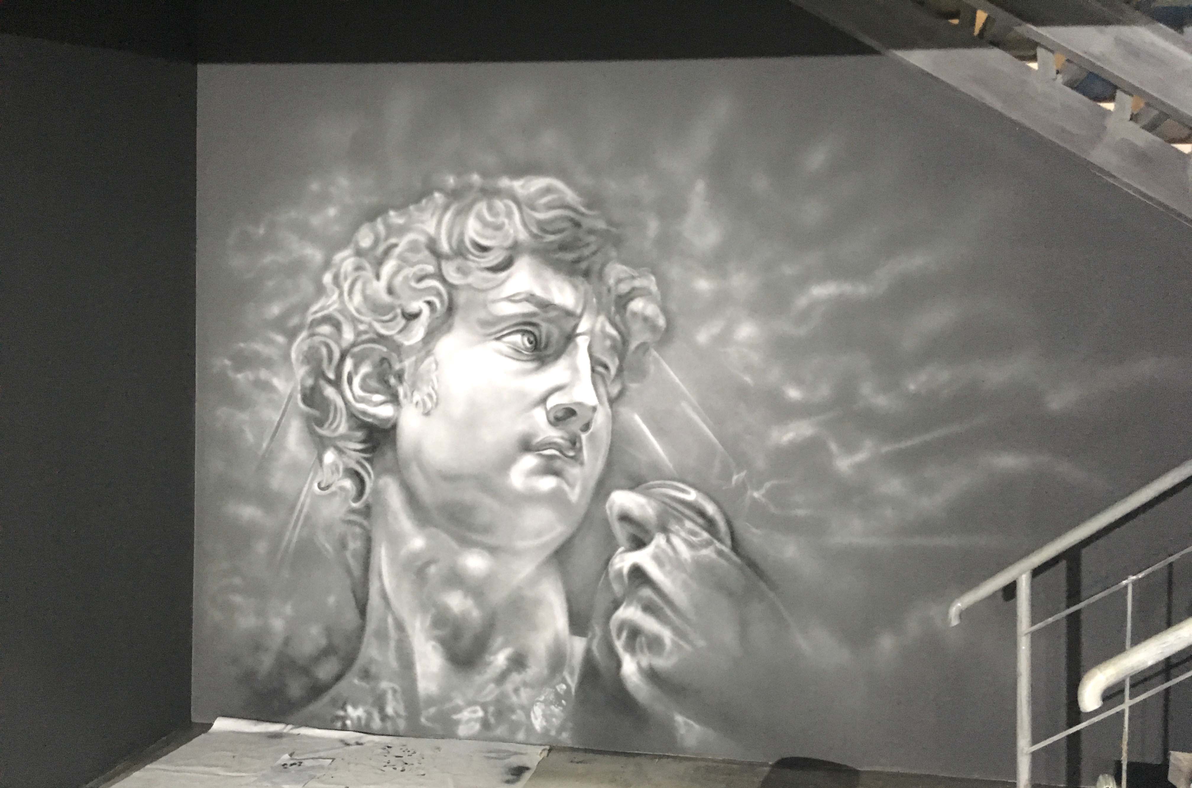 В одном из мебельных салонов города, мы нарисовали Давида Микеланджело.