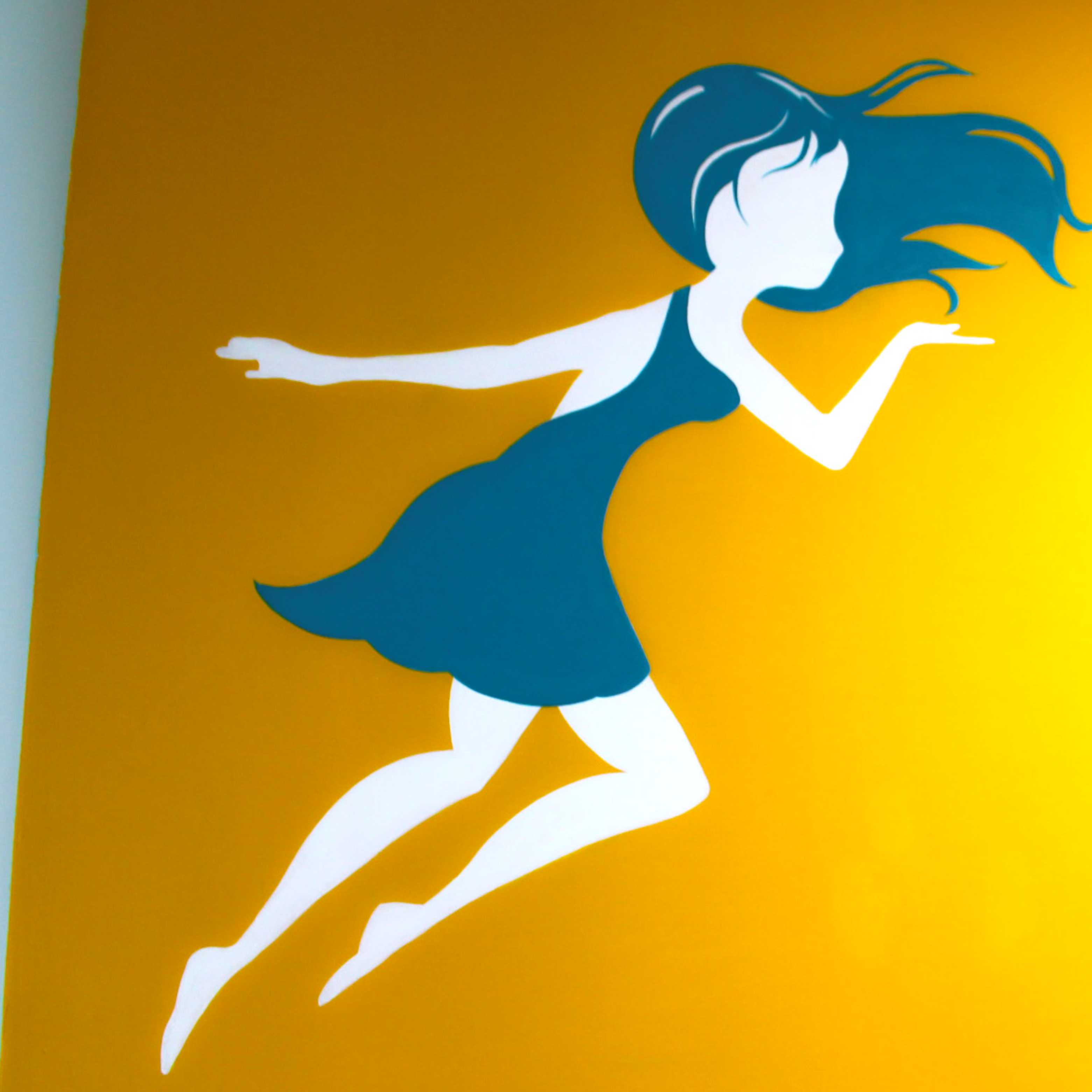 Проходя в глубь зала мы оформили стеночку двумя цветками, выполненные в технике аэрографии, и также нам в помощь кисти.