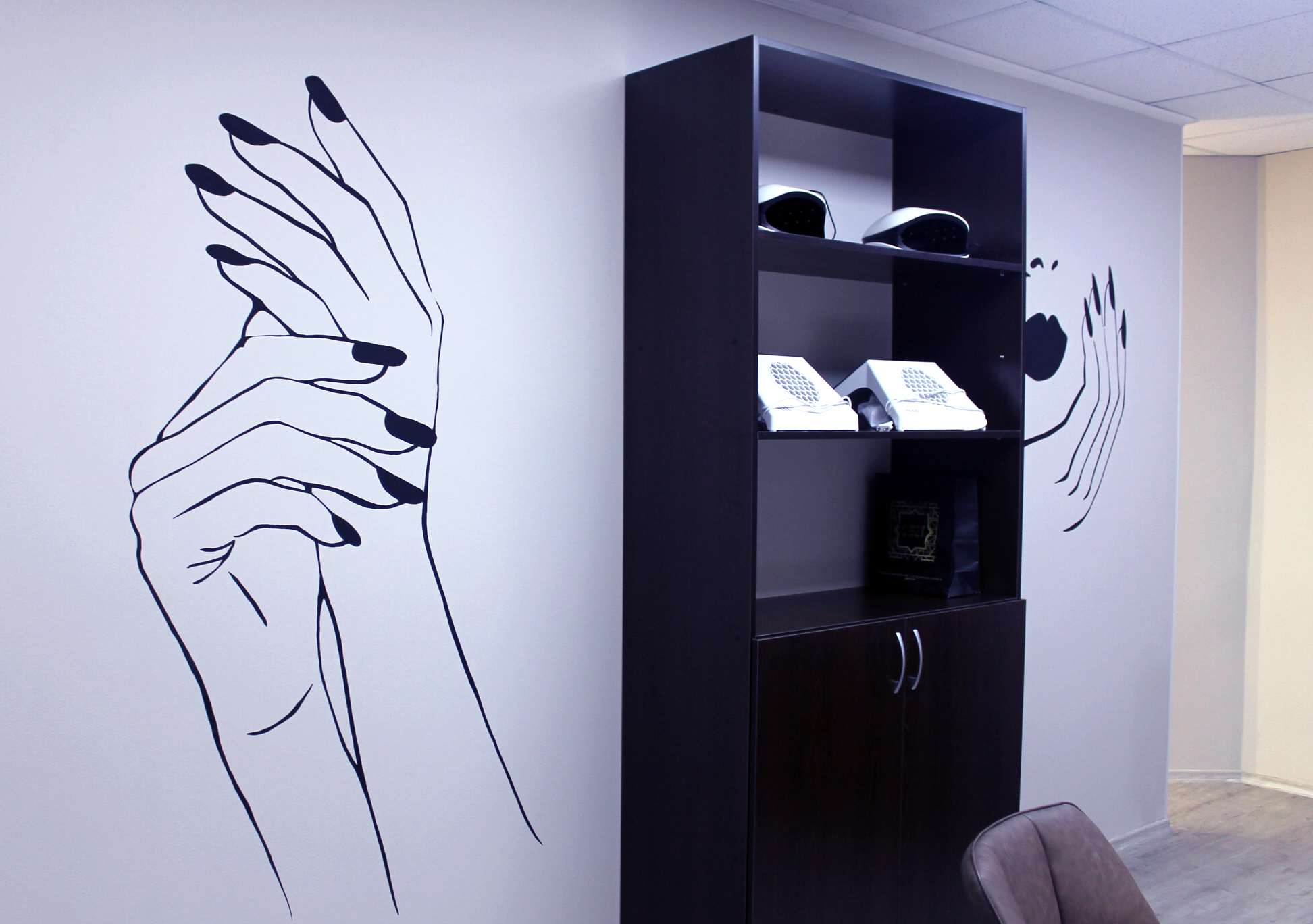 Так и в этом случаи мы расписали салон @ledi_nail_studio роспись хорошо вписалась в пространство салона, это хороший вариант и бюджетный.
