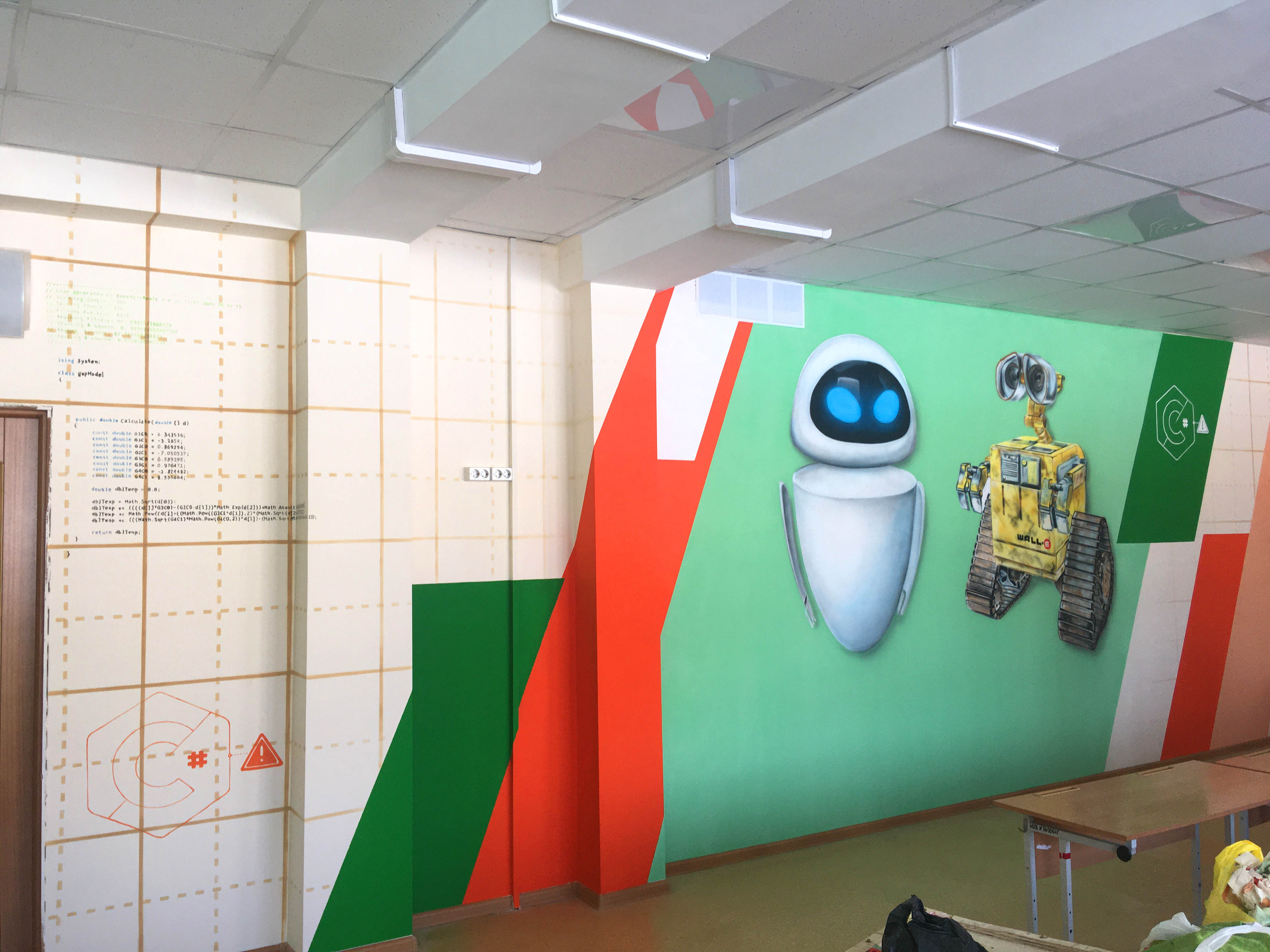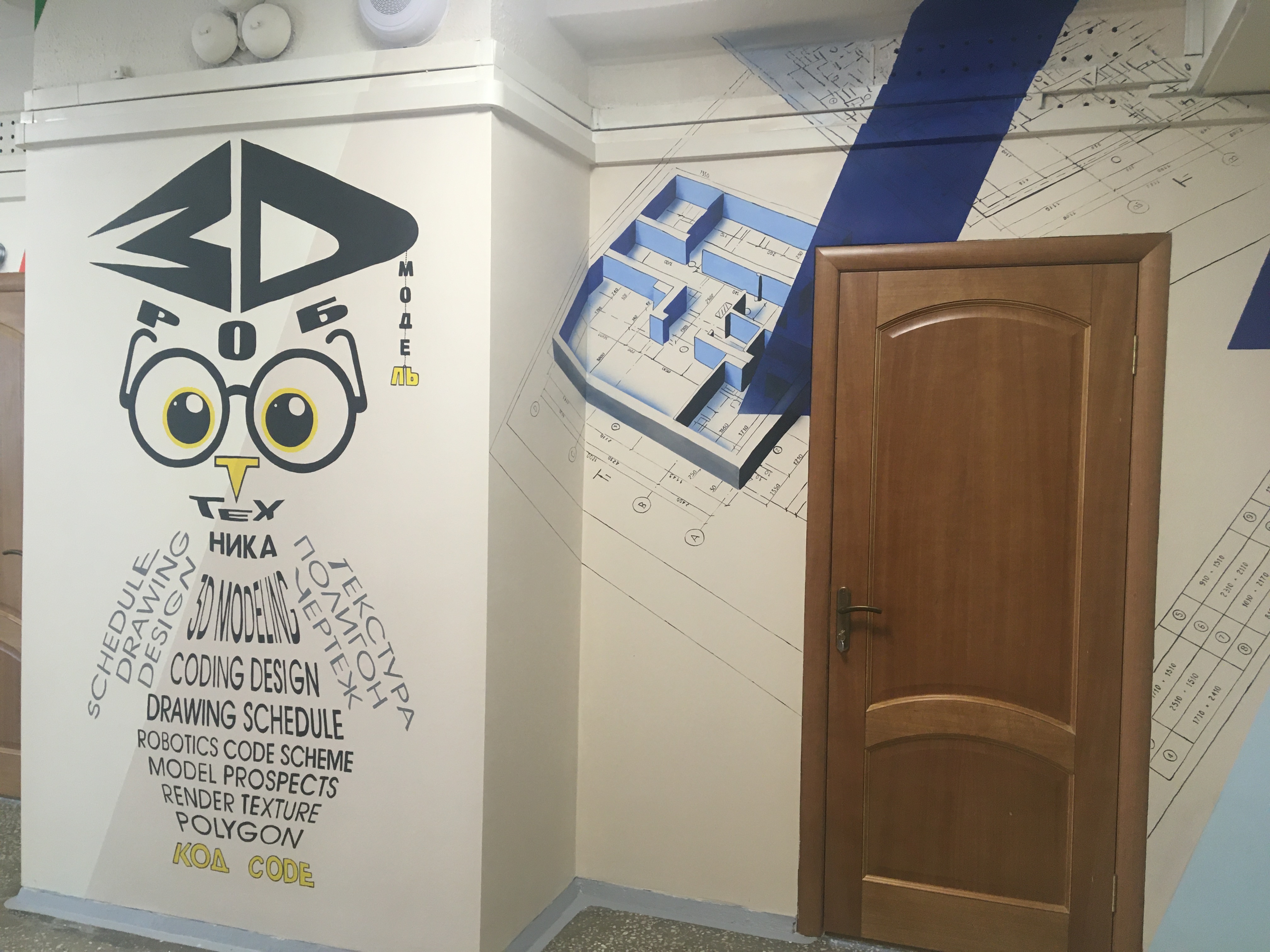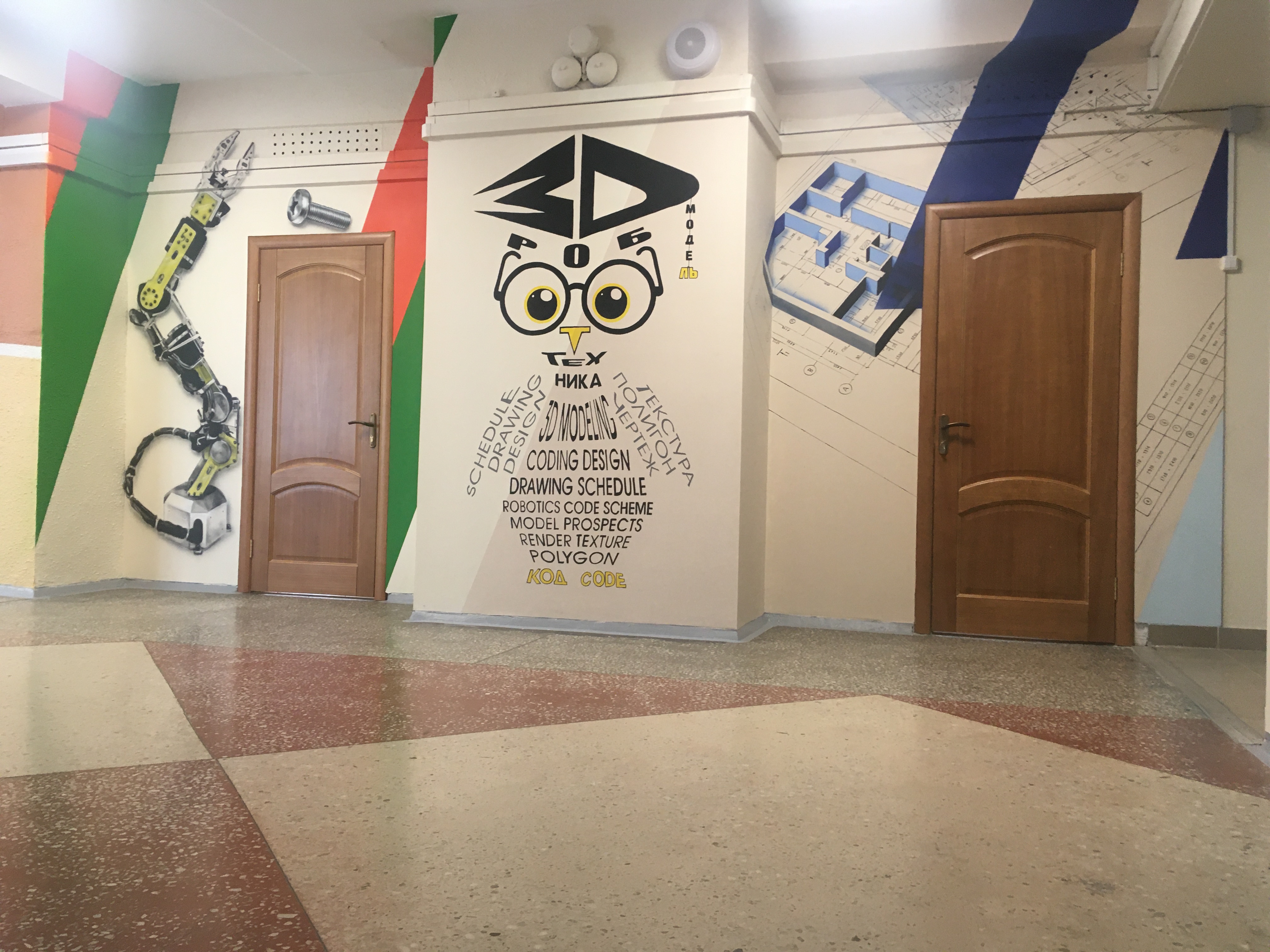 В Гимназии имени А.С. Пушкина было расписано нами два кабинета робототехника и моделирование.