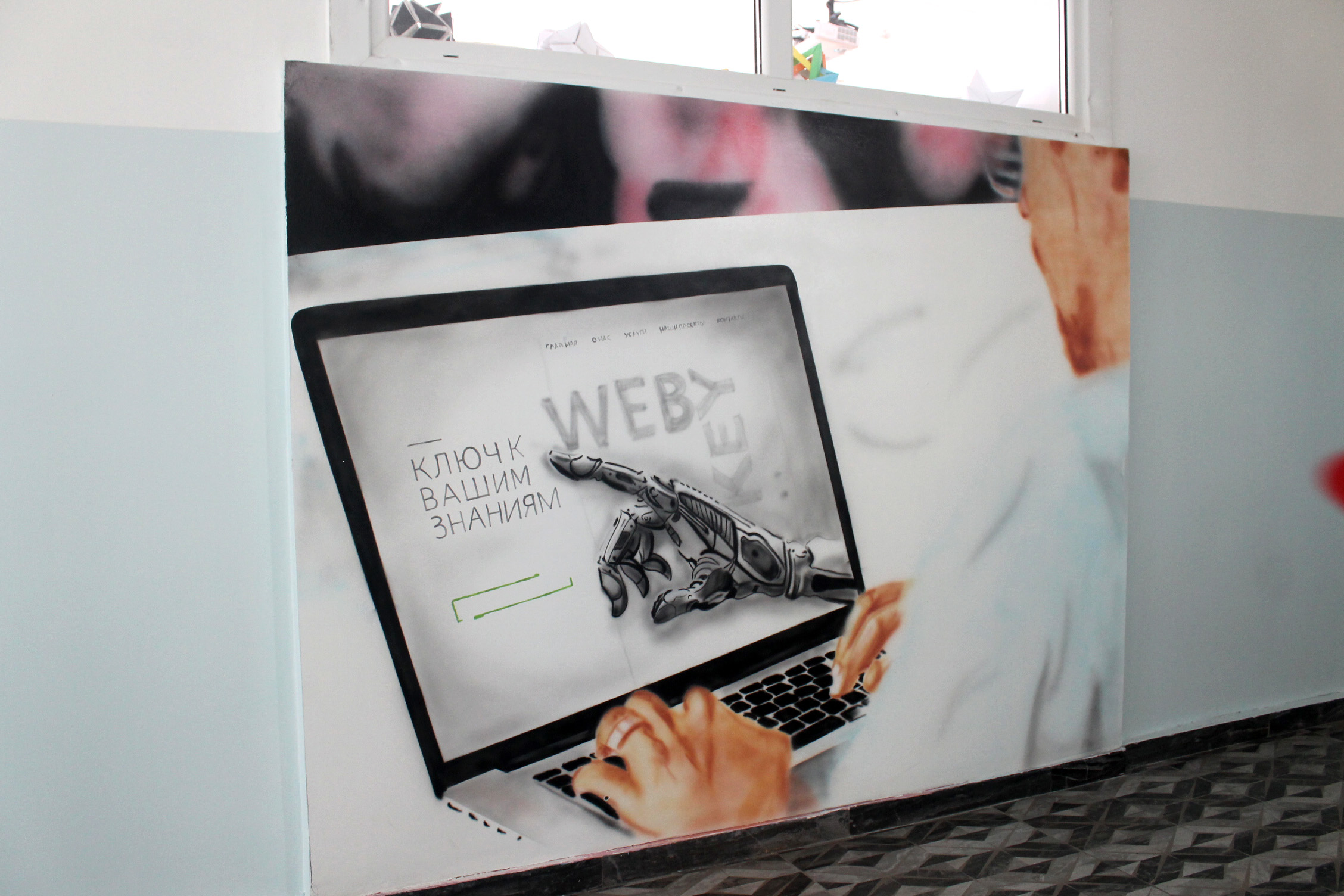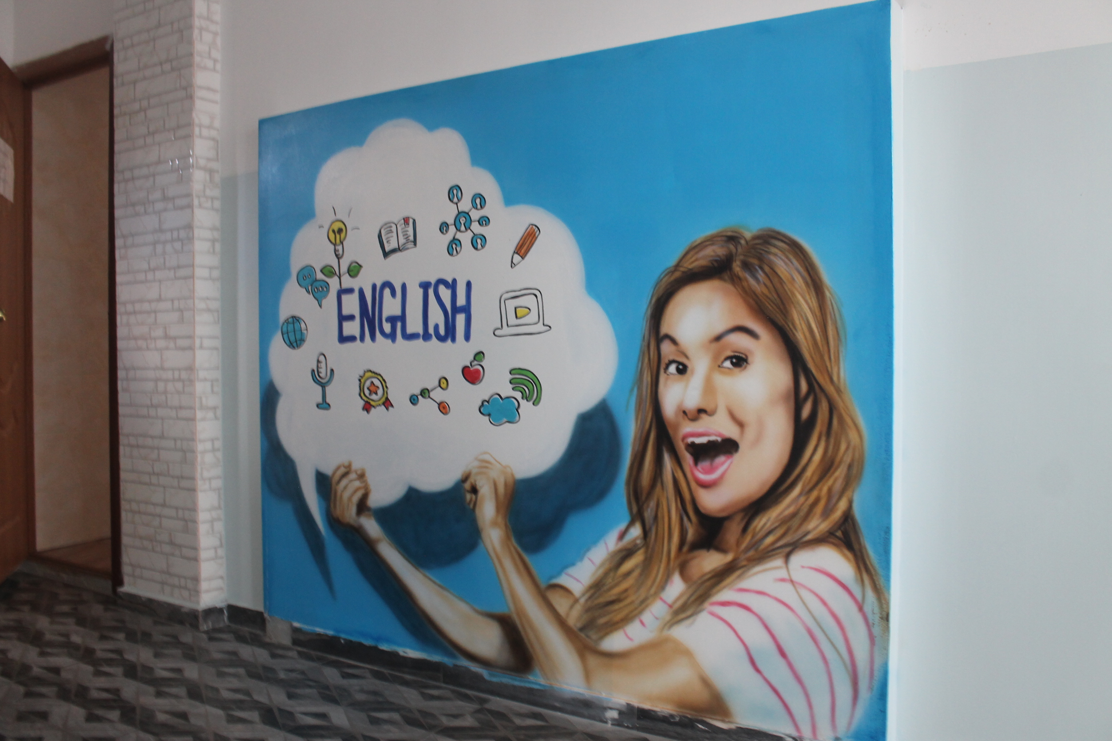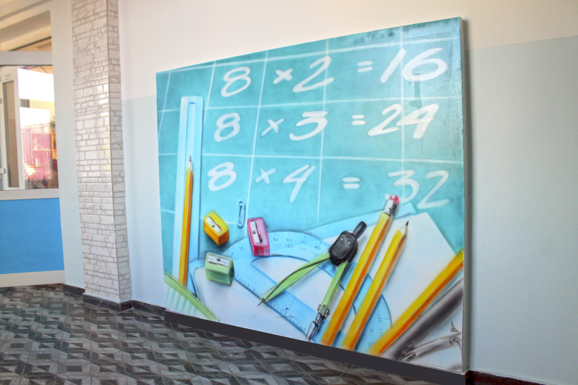 Возле каждого кабинета мы выполнили подходящую роспись. Тем самым детям информационно понятно какой где кабинет.