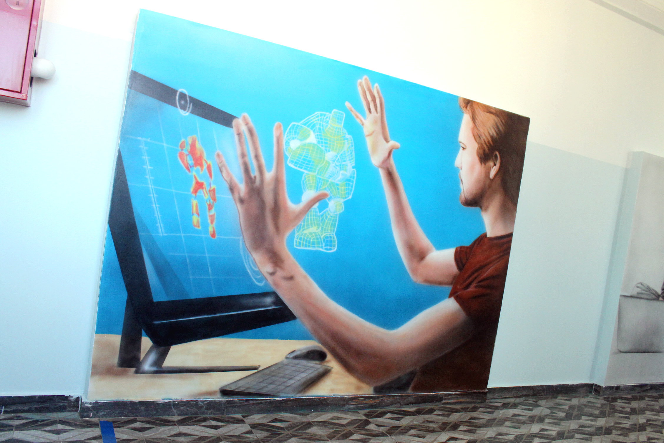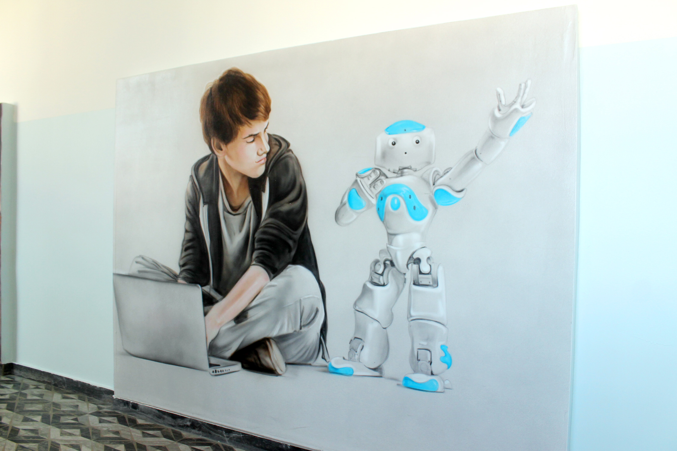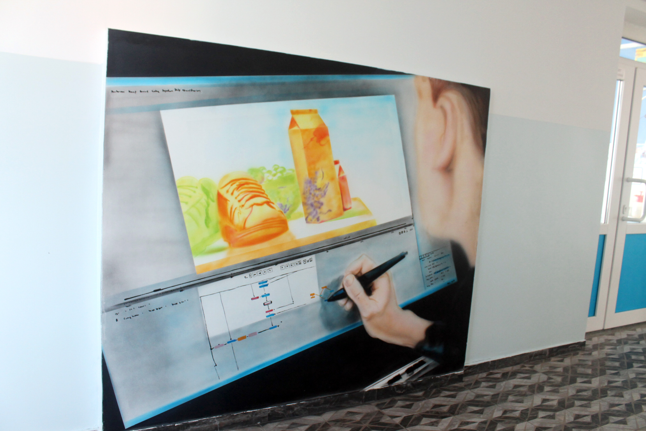 Возле каждого кабинета мы выполнили подходящую роспись. Тем самым детям информационно понятно какой где кабинет.
