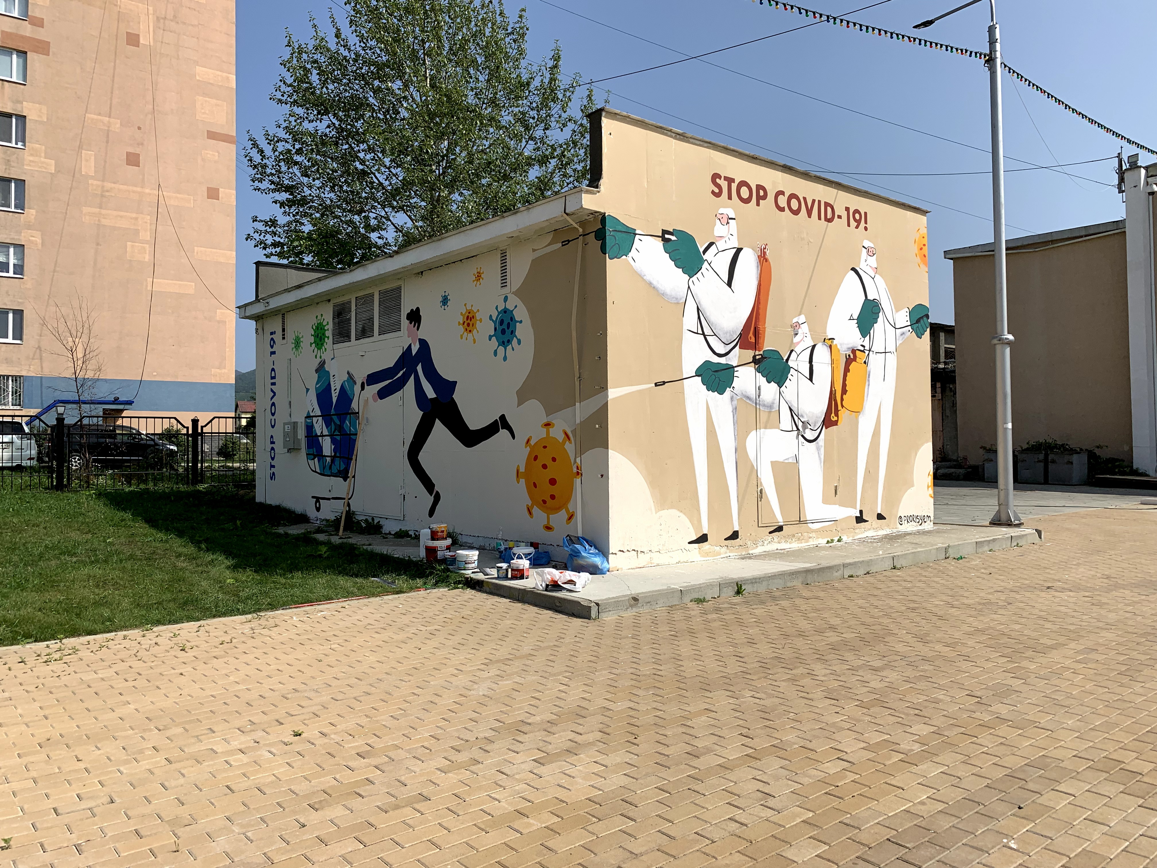 По макетам заказчика мы изготовили Стрит-арт на стненах трансформаторной будки, в максимально короткий отрезок времени 3 дня.