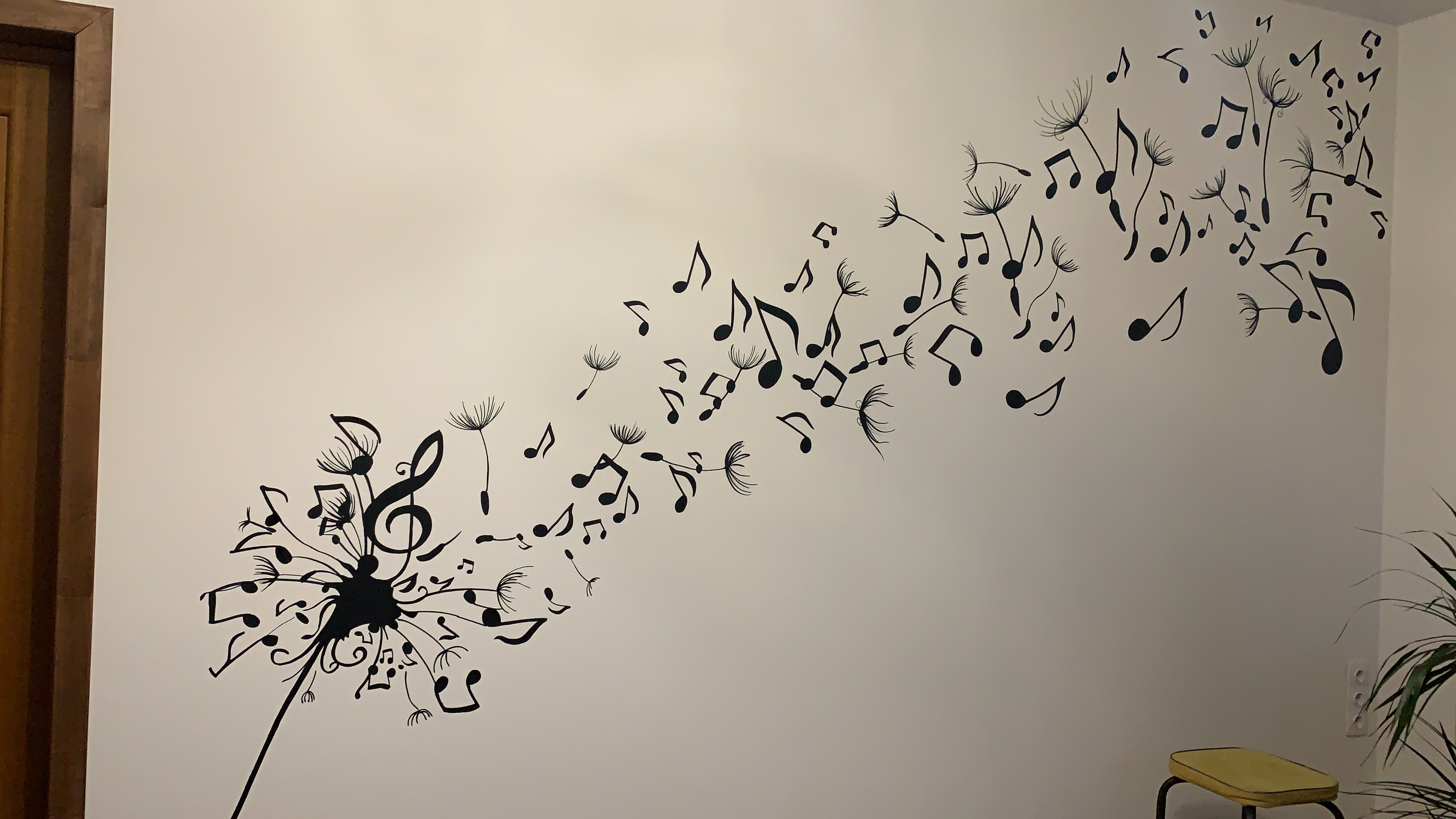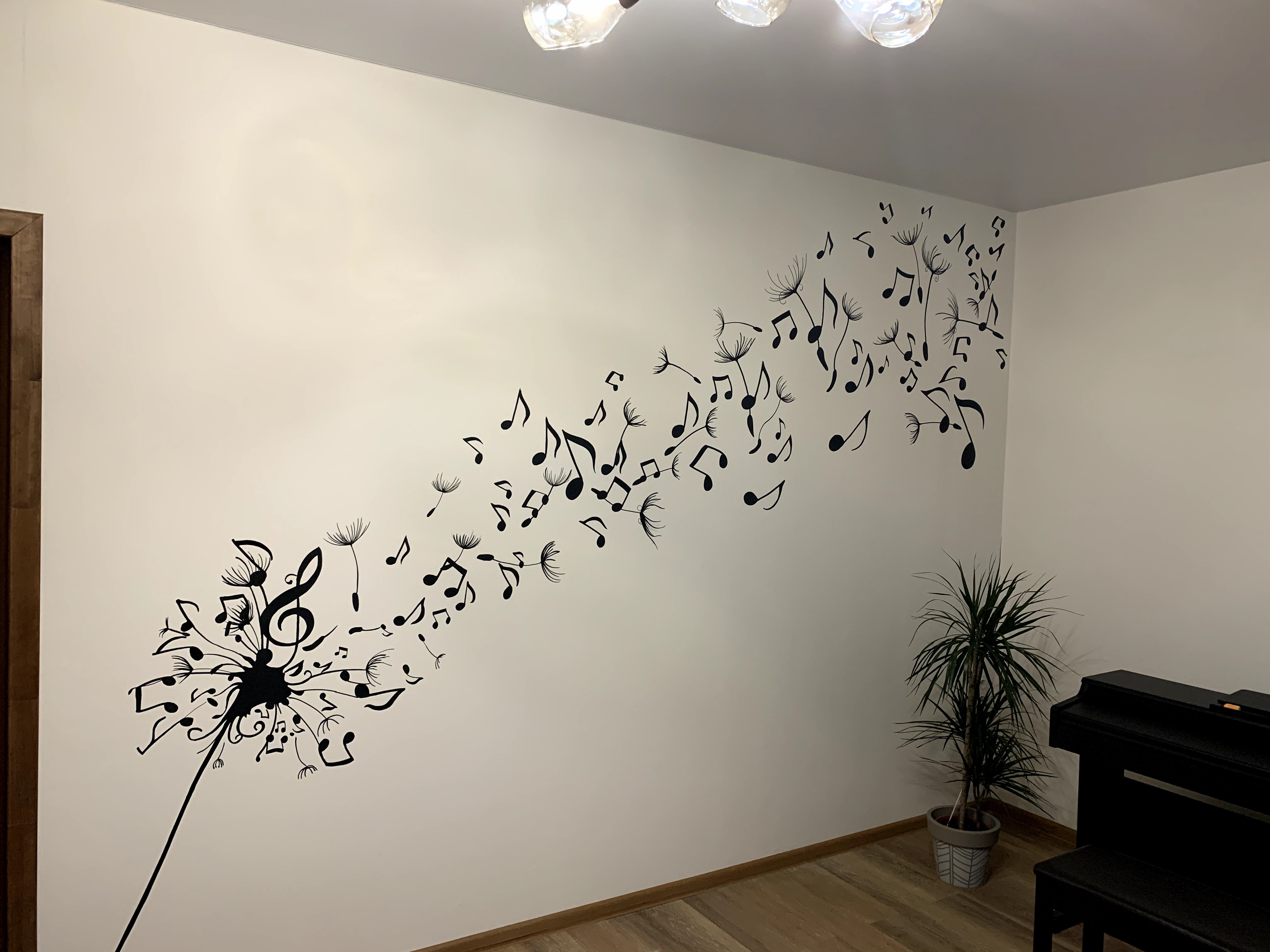 Как в этом варианте, роспись аккуратная и элегантная она вписалась в интерьер, как-буто она там всегда и была.