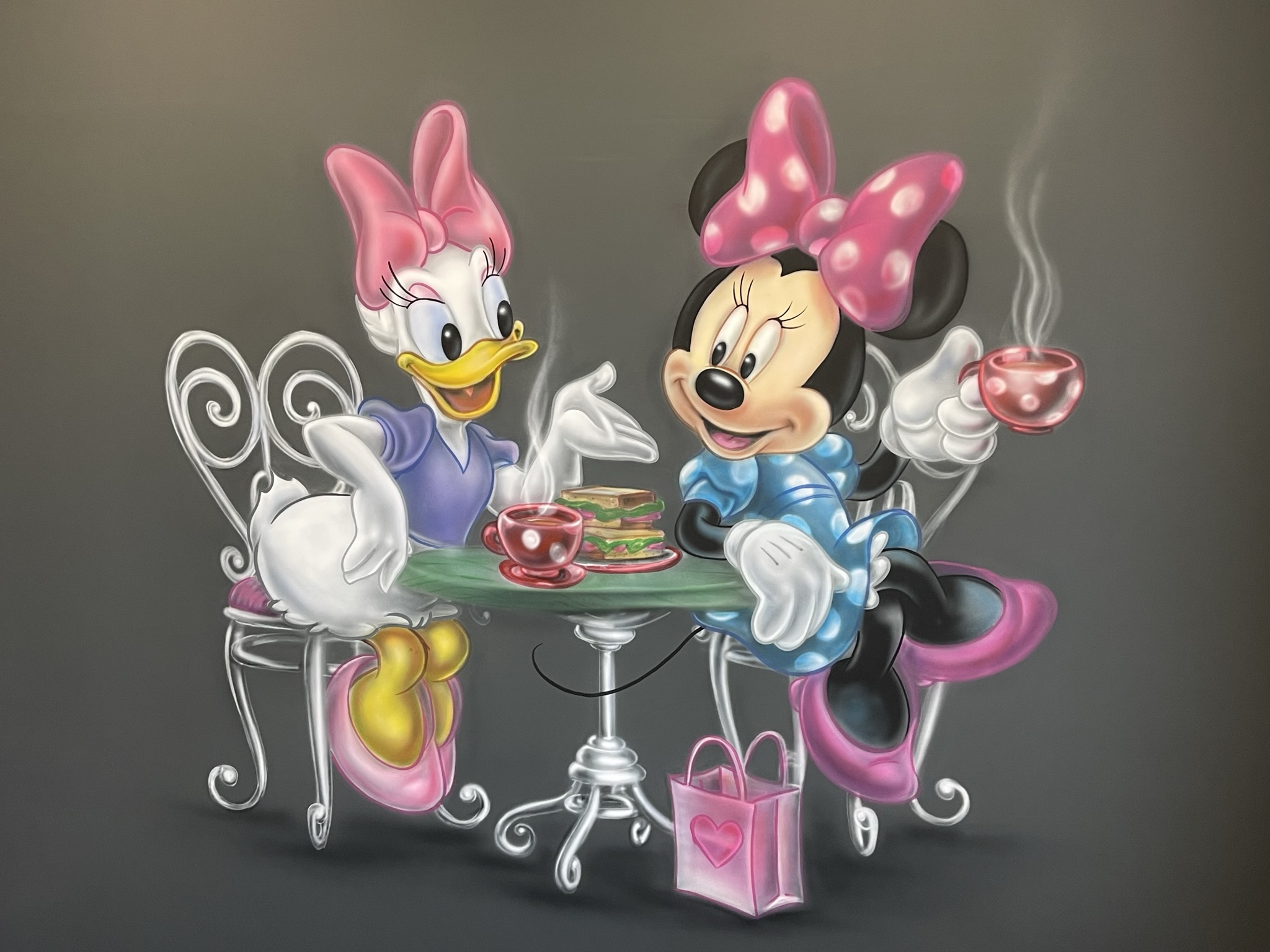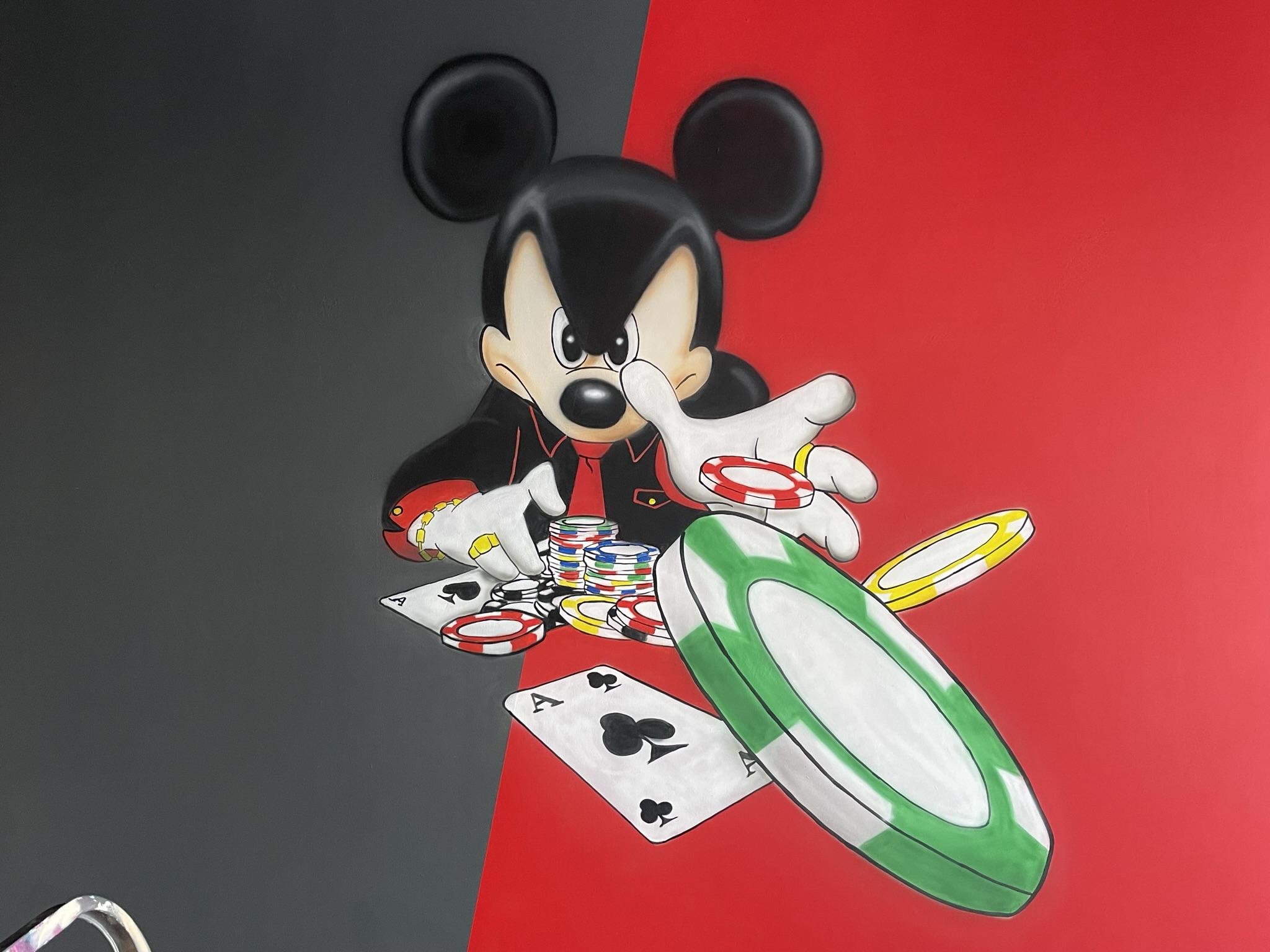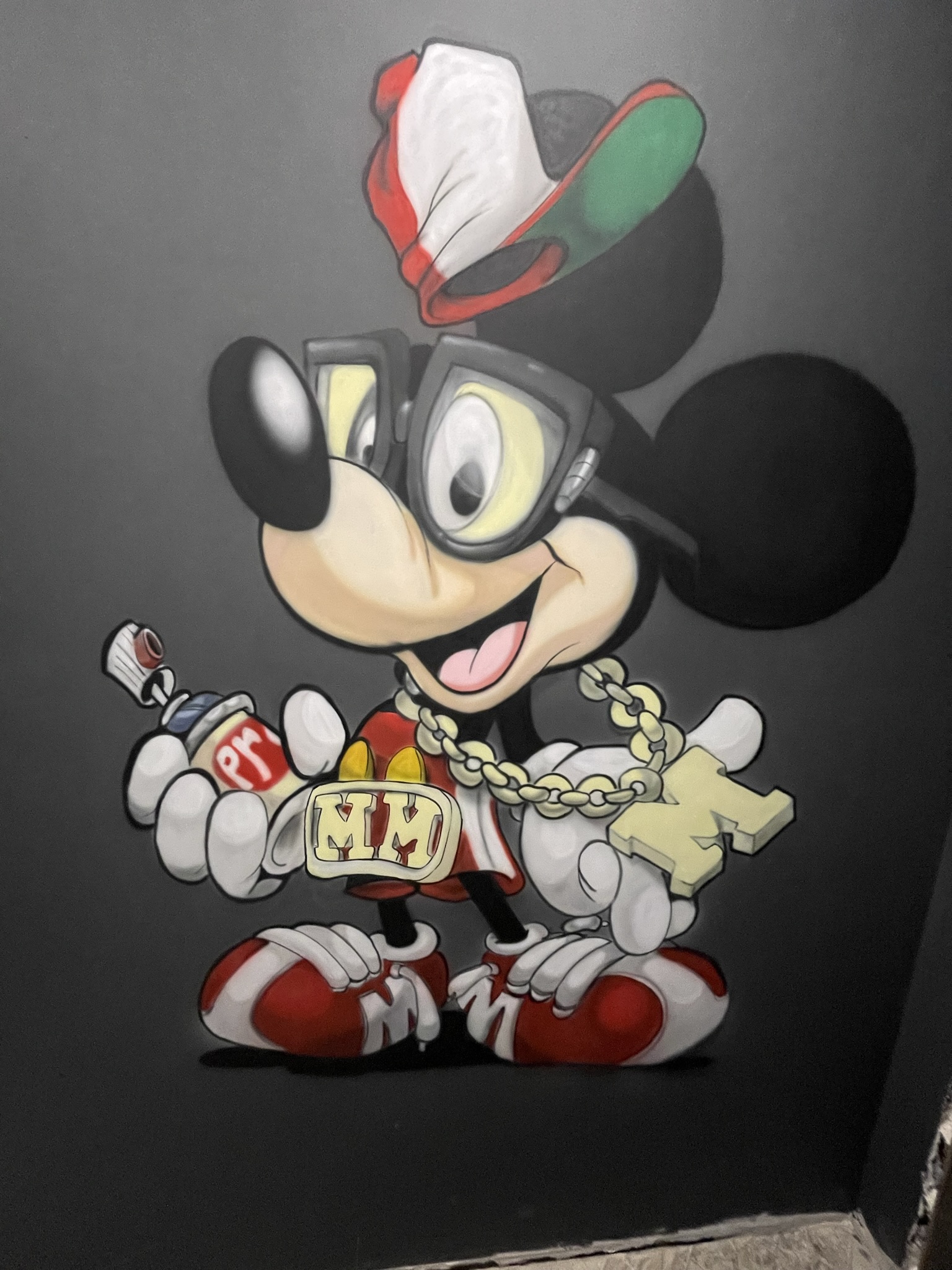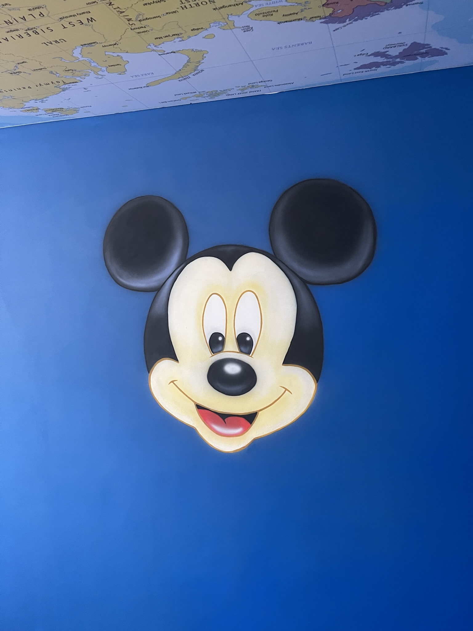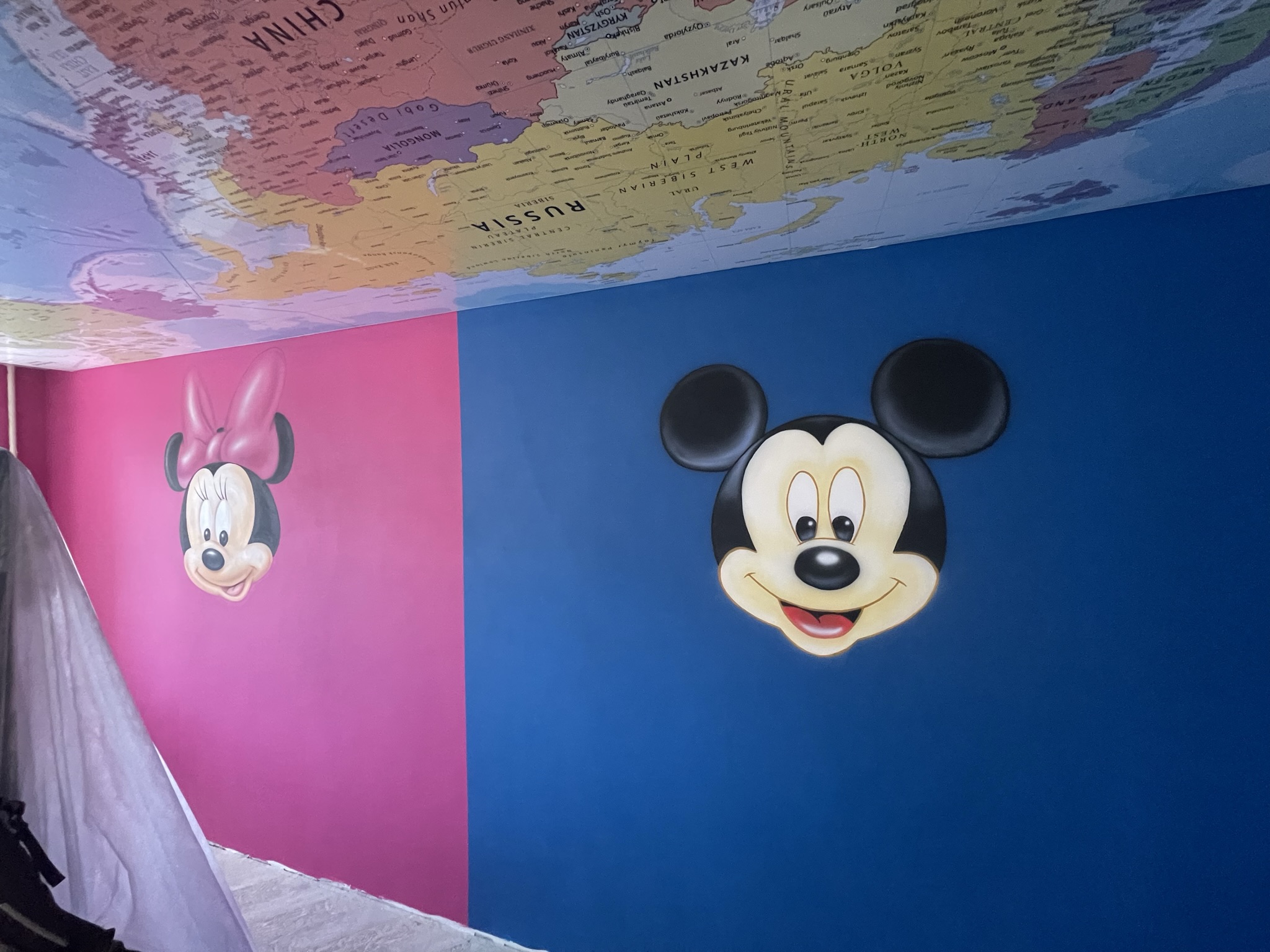 просто влюблена в Микки Мауса. И поэтому основной задачей было оформить всю квартиру в стиле Диснея. Очень яркие цвета, очень интересные образы. Квартира находится в Корсакове, но не смотря на расстояние мы выполнили работу за пять дней. За это время были загрунтованы и выкрашены стены и нанесены персонажи в стиле аэрография.