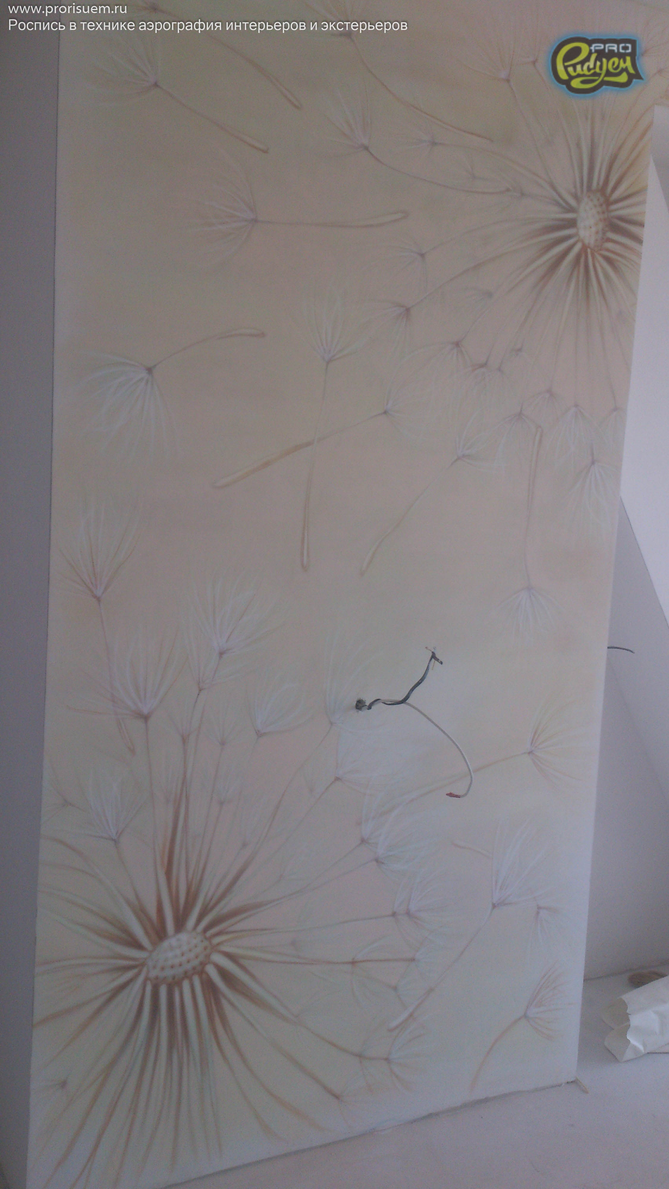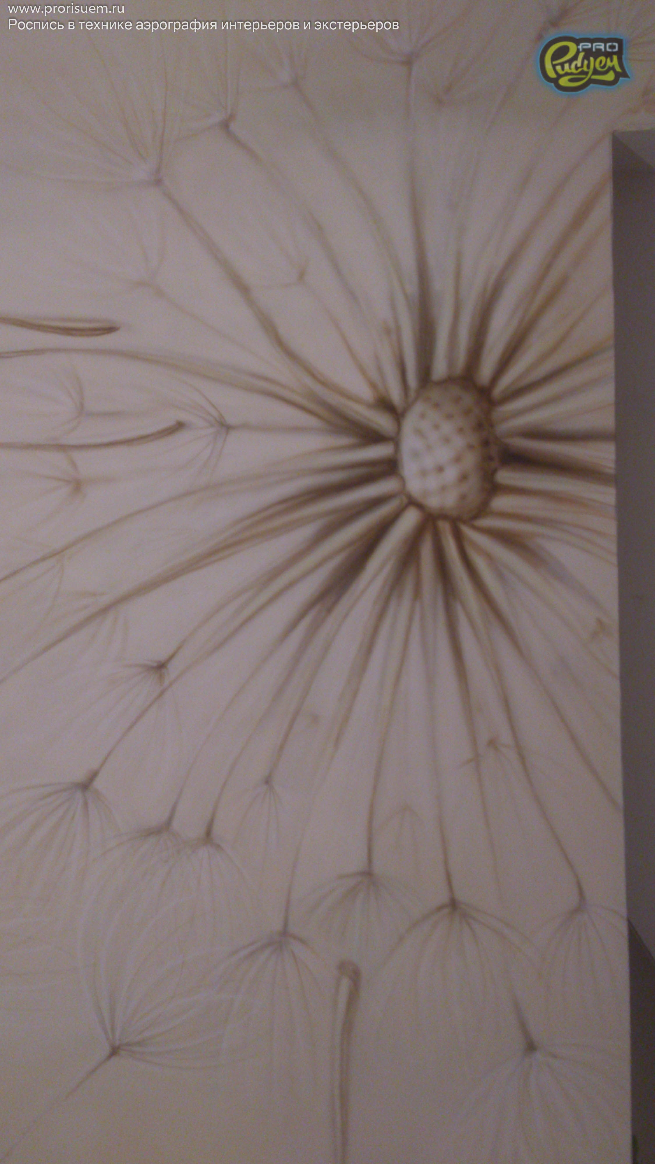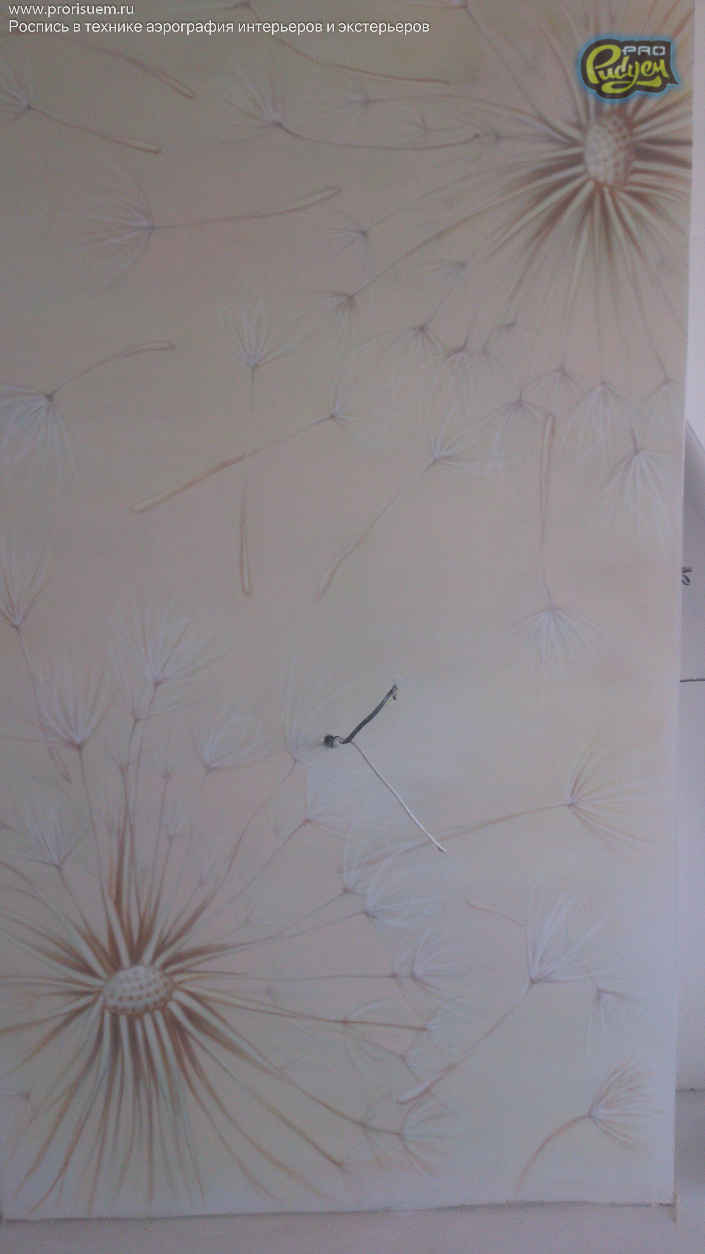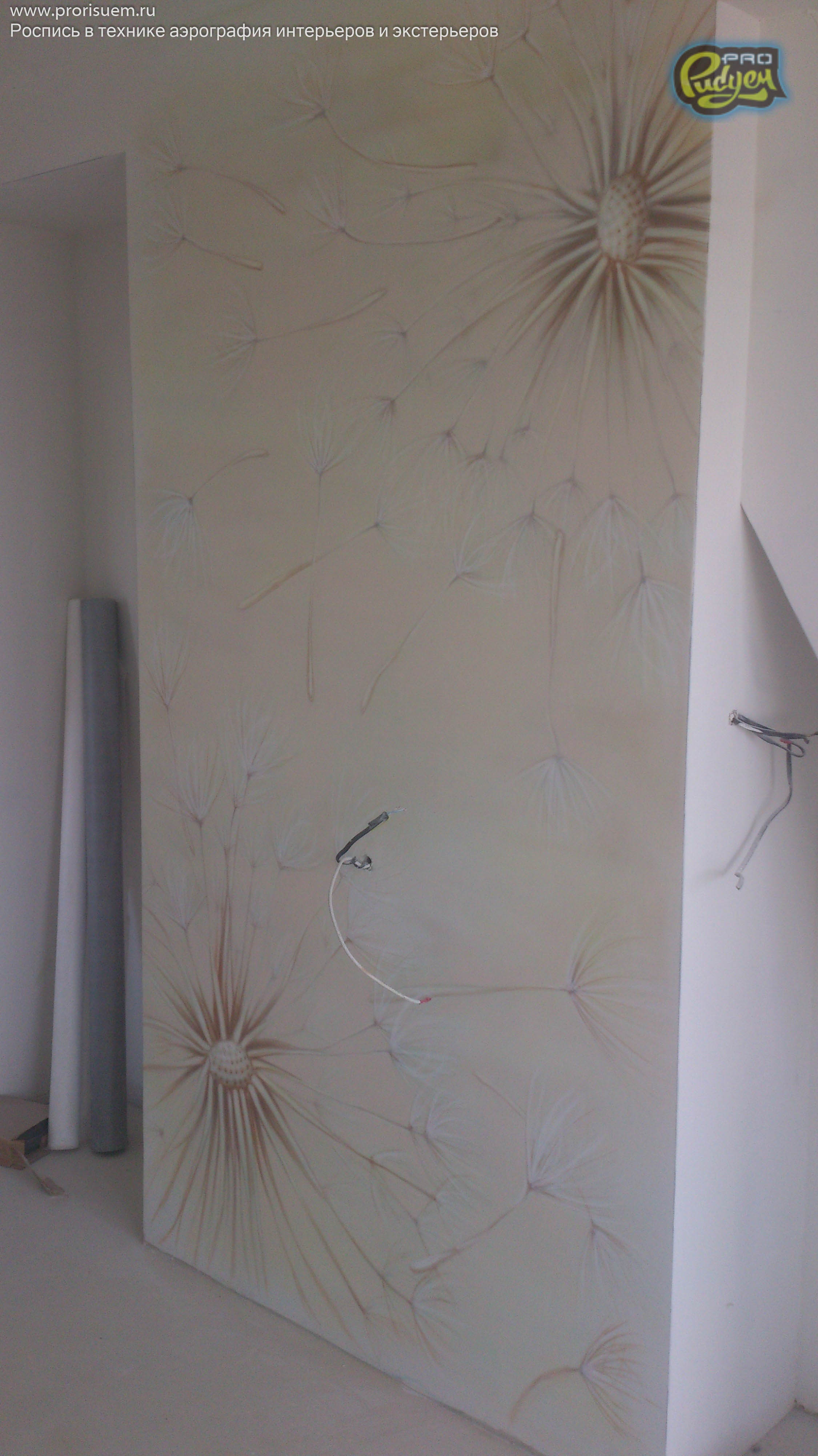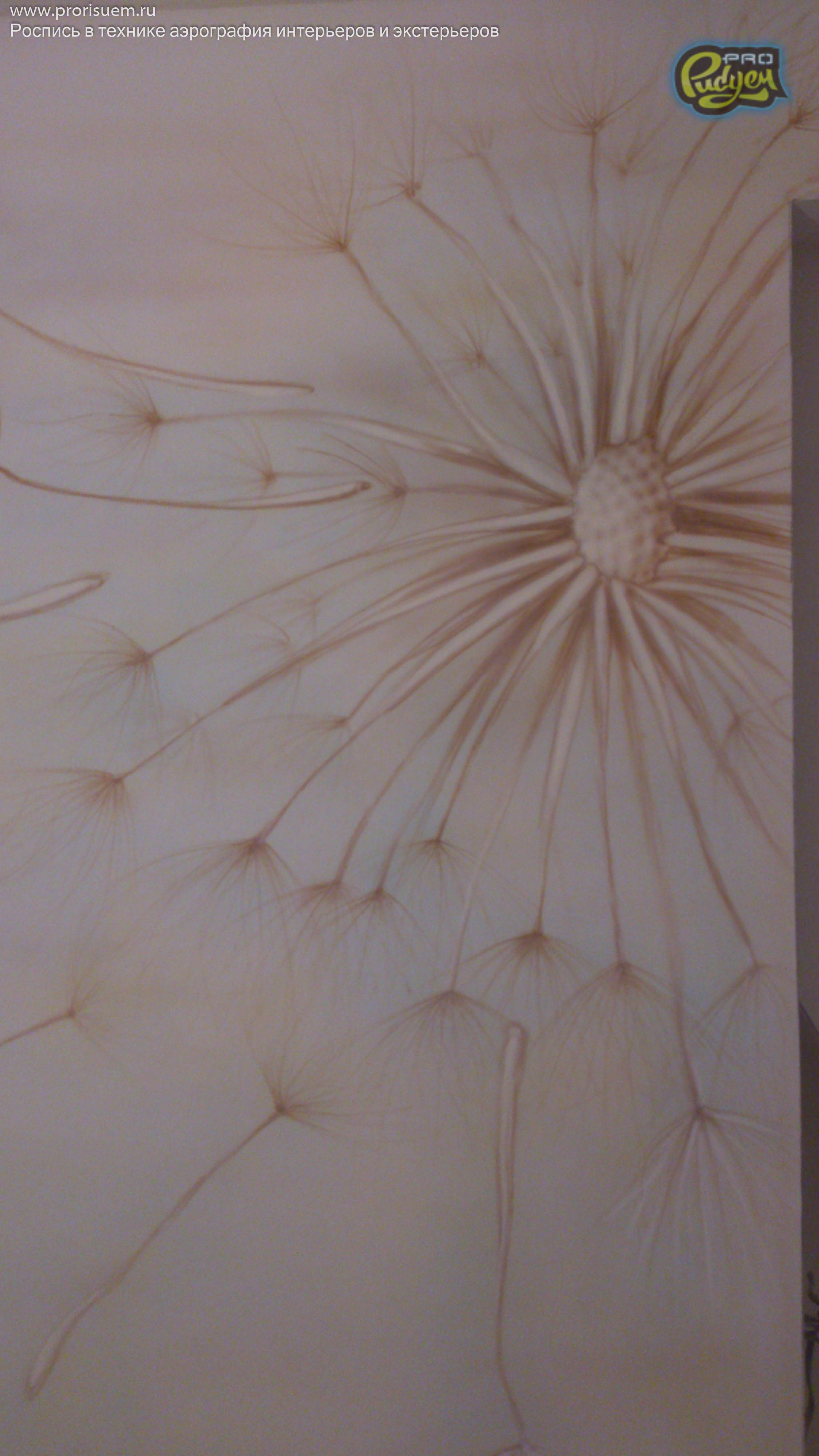 Очередная работа нашего коллектива Pro-Рисуем, «Одуванчики». Аэрография — это не только распрыскать краску из баллончика по поверхности, она любит творческий подход. А наша фантазия + опыт в подобных проектах дало нам возможность проявить себя в очередной раз. Перед Вами роспись стен в интерьере квартиры. Посмотрите, вроде как, не плохо получилось?