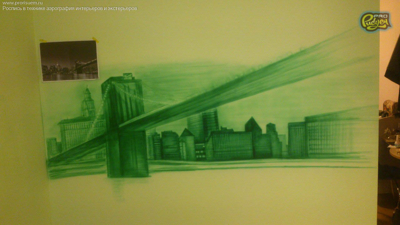 Наша команда художников Сахалина Pro-Рисуем смеет предложить ещё один проект заказанный у нас частным лицом. Тематика рисунка вроде бы распространенная, но мы постарались сделать индивидуальность. И бах! Вашему вниманию предстает Нью-Йорк собственной персоной. Работа выполнена аэрографом, что опять же подчеркивает нашу специализацию.