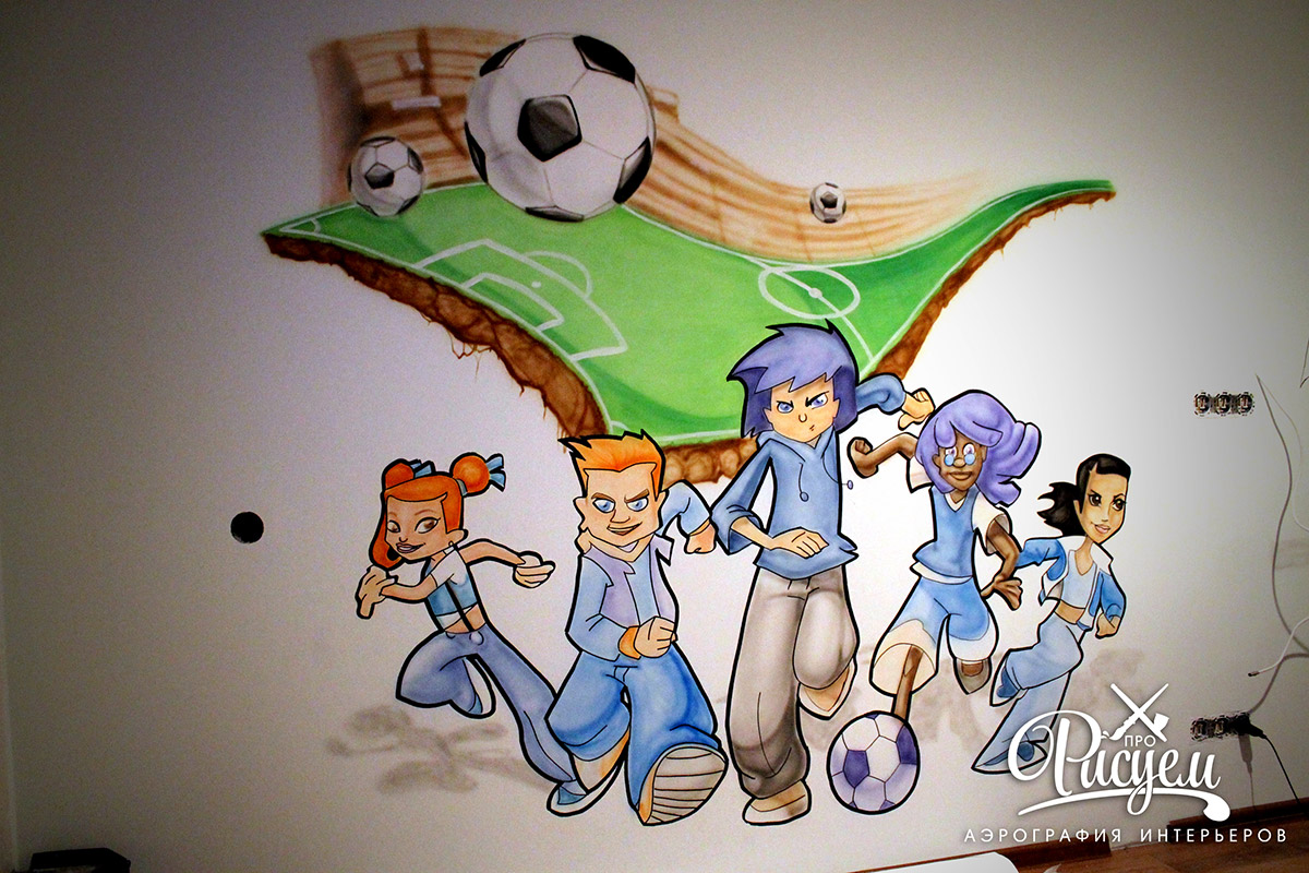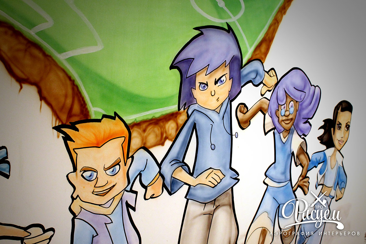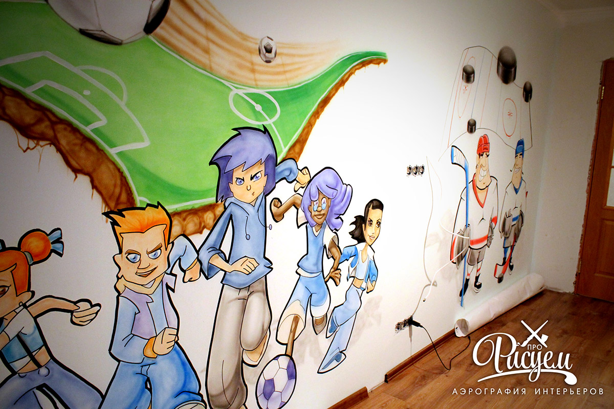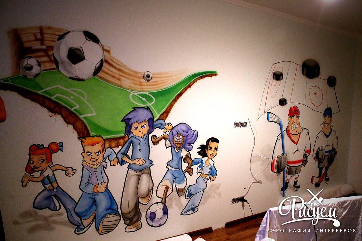 Мультипликационная композиция будет отличным дополнением комнаты подрастающих спортсменов.