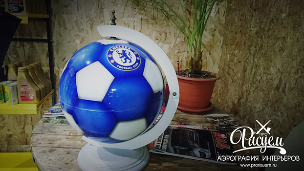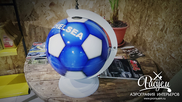у неё возникла оригинальная идея, превратить глобус-бар в мяч-бар. Благодаря нашей работе появилась вот такая уникальная и эксклюзивная вещь. В работе использовались автомобильные эмали, лак и немного волшебства. Вот так можно из обычных вещей делать что-то оригинальное, индивидуальное. Эти вещи долго будут радовать глаз и согреют душу. Ручная работа в единственном экземпляре не сможет оставить равнодушным никого.