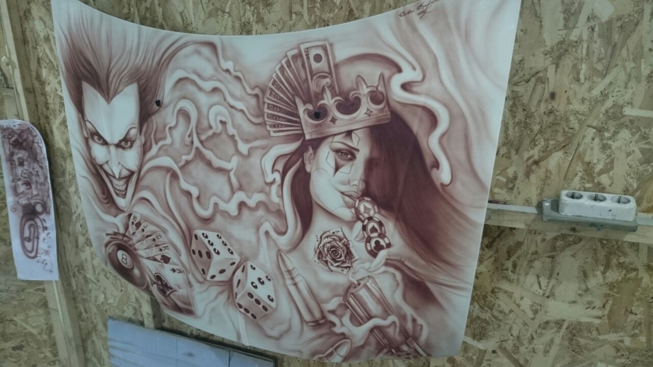 Компанией "Мотолог" была разыграна аэрография на одной из деталей авто.